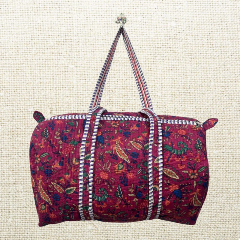 Each duffle bag is a testament to Indian craftsmanship, lovingly stitched by skilled artisans using time-honored techniques. The intricate floral prints reflect the cultural vibrancy of rural India, making every piece not just a bag—but a story you carry. Whether you’re shopping at a local market or heading to the airport, this bag makes a bold, elegant statement.